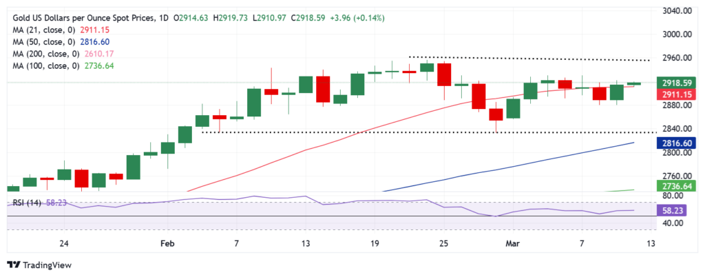 周二,金价收于 21 日简单移动平均线 (SMA) 上方,目前为 2,910 美元,为买家带来了进一步上涨的新希望。14 日相对强弱指数 (RSI) 保持在 50 以上,证明看涨潜力是合理的。如果买家在美国通胀数据公布后维持在 21 日简单移动平均线 2910 美元上方,那么 2 月 26 日的高点 2930 美元将成为他们的下一个目标。进一步上涨,金价将瞄准历史高点 2956 美元,然后是 2970 美元的水平。如果美国 CPI 数据火爆,抛售压力加剧,则前一天低点 2880 美元将立即成为支撑位。