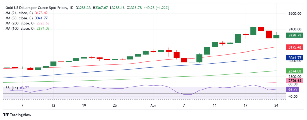 In case Gold sellers return with conviction, a test of the 21-day Simple Moving Average (SMA) at $3,175 will be inevitable on a sustained move below the previous day’s low of $3,260, followed by the $3,200 barrier.