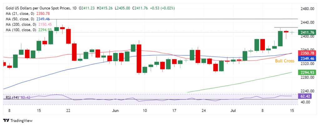 由于 14 天相对强弱指数RSI坚守在 50 水平上方,金价仍有望重新测试 2450 美元的历史高点。此外,21 天SMA平均线周五收于 50 天 SMA 上方,确认牛市交叉,并为金价进一步上涨提供另一个理由。然而,黄金买家需要突破两个月高点 2.425 美元,才能挑战 2.450 美元的历史高点。持续突破后者将打开通往 2.500 美元关键水平的大门。