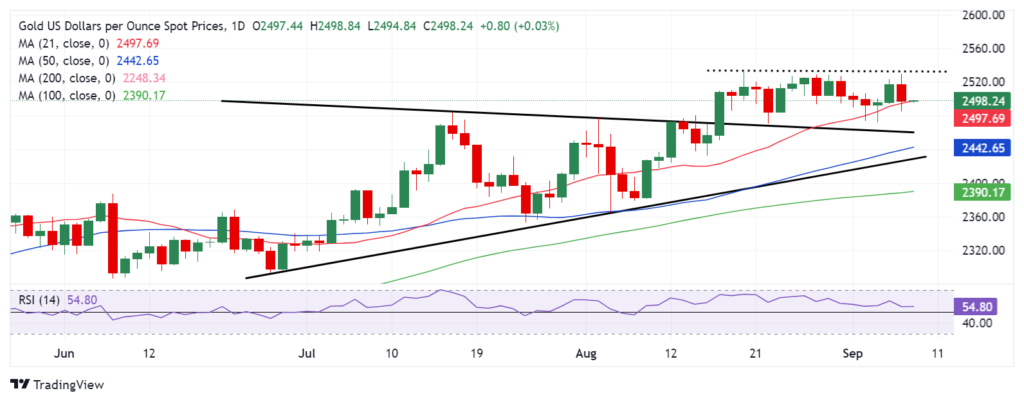 Merebut kembali level $2.500 pada penutupan harian sangat penting bagi harga Emas untuk memperkuat bias bullish. Penghalang sisi atas yang relevan berikutnya terlihat pada rekor tertinggi $2.532, di atas level psikologis $2.550 akan mulai berperan.