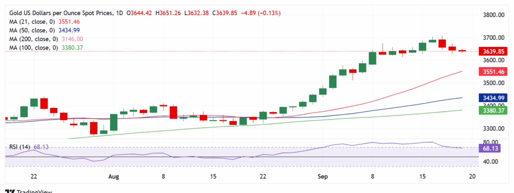- 金は3日前の安値からの反発を維持し、金曜日早朝に$3,650を再トライ。