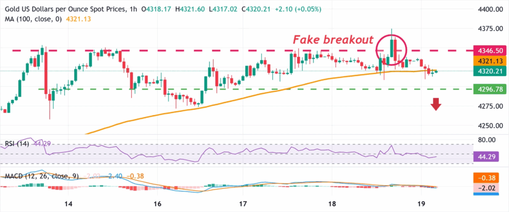 夜間に$4,350-$4,355の供給ゾーンをフェイクブレイクアウトし、その後金曜日に100時間SMAを下回ったことは、XAU/USDの弱気派に有利である。しかし、1時間足チャートと日足チャートのオシレーターが混在しているため、より深い損失に備える前に、$4,300を下回る追随売りを待つことが賢明である。その後、地金は$4,272-4,271付近まで下落する可能性がある。これを下抜けた場合、金相場は頭打ちとなり、$4,200を割り込むことになります。.