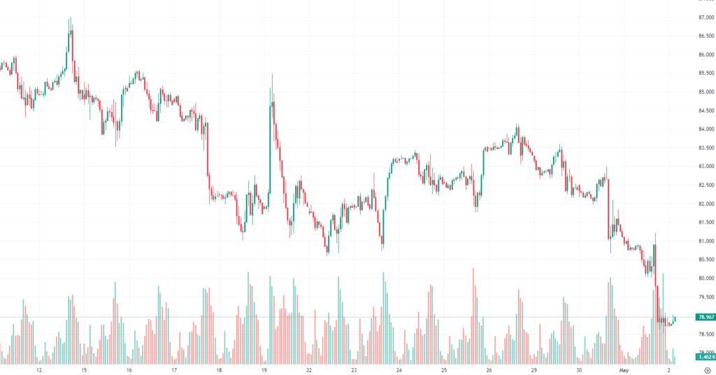 79.032Support*78.918 *78.786 **78.54 ***