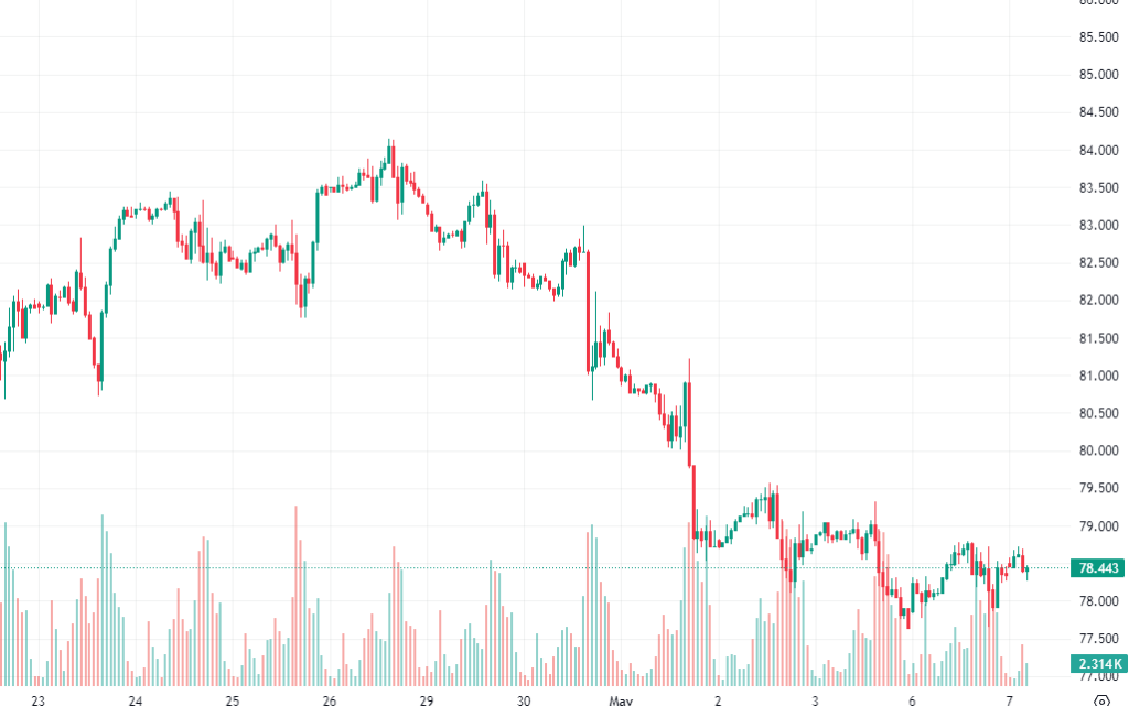 | 78.451 | Support* | 78.341 * | 78.241 ** | 78.031 *** |