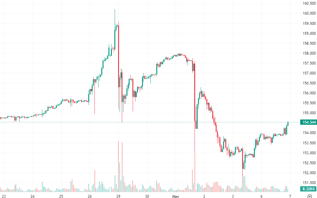 | 154.427 | Support* | 154.372 * | 154.292 ** | 154.157 *** |
