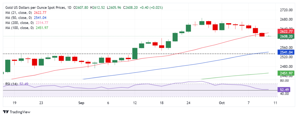 Người mua vẫn tiếp tục bảo vệ vị thế của mình ngay cả sau khi giá vàng đóng cửa vào thứ Tư dưới mức hỗ trợ quan trọng của Đường trung bình động đơn giản (SMA) 21 ngày, sau đó là $2.619.
