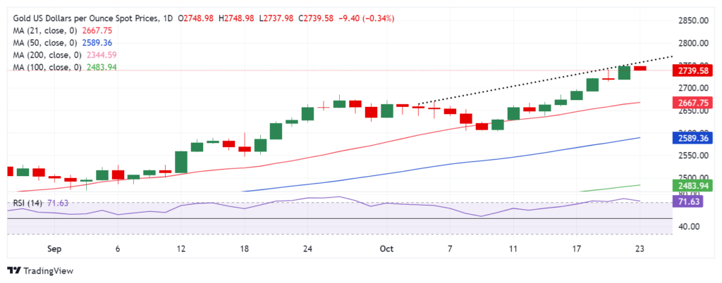 Giá vàng có vẻ sẽ kiểm tra ngưỡng $2,730 khi thoái lui khỏi mức cao kỷ lục $2,749.