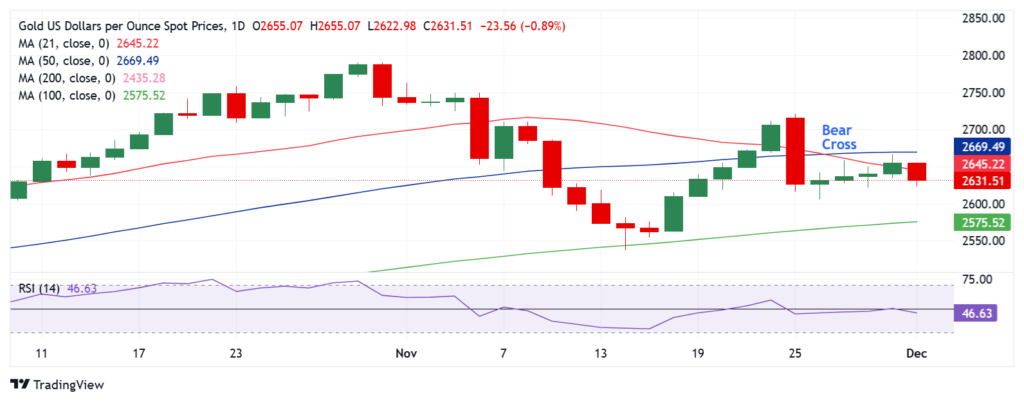 从技术角度来看,随着 14 天相对强弱指数 (RSI) 跌回 50水平以下, 黄金卖家可能会保持控制。上周的熊市交叉仍Bạn có thể làm điều đó một cách dễ dàng. 2.605 美元一致,跌破该水平不能排除跌向 100 日简单移动平均线 (SMA) 2.576 美元的可能性。