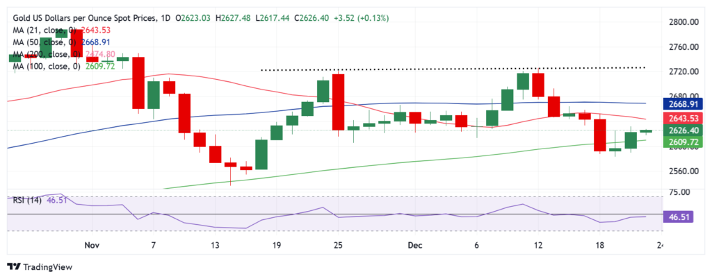14 天相对强弱指数 (RSI)保持在 50 水平以下。以日收盘价重新夺回 21 天简单移动平均线2,645 50 天 SMA 2.669美元。进一步上涨, 2.700.