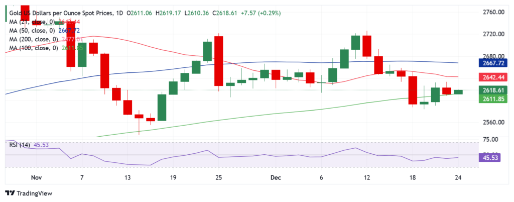 如果黄金买家放弃,持续跌破 100 日简单移动平均线阻力位转为支撑位 2.611美元将使月低点 2,583 美元受到考验。下一个相关支撑位分别是 11 tháng 15 15 tháng 14 14 tháng 7 2,555 美元和 2,537 Vâng.