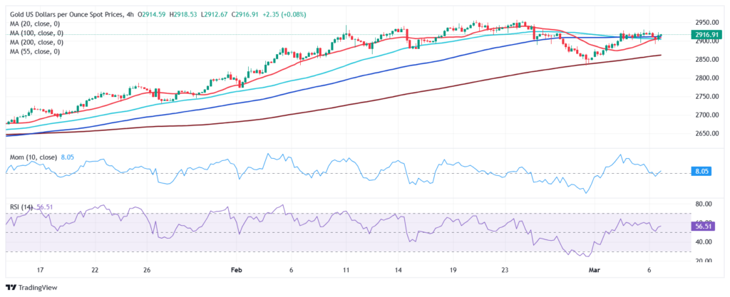 近期图景显示买家正在努力保持控制权。黄金对目前正在其所有移动平均线之上发展,尽管持平的100 SMA 位于 2.911,50 美元。与此同时,20 SMA 低于较长的移动平均线。最后,技术指标在中线附近出现分歧,动量指标指向较低,但相对强弱指数(RSI) 上涨.