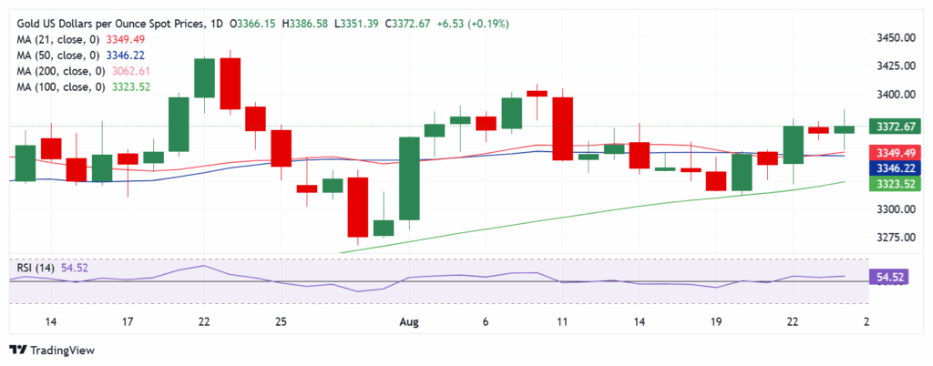 Về mặt kỹ thuật, Vàng vẫn được hỗ trợ khi ở trên mức $3.350 trong bối cảnh RSI tăng giá hàng ngày.