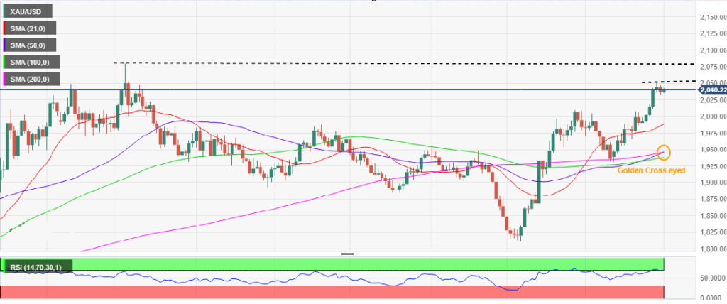 在上行方面,如果接受高于数月高点 2052 美元,则将把上升趋势延伸至 2070 美元的静态阻力位。 2079 美元的历史高点将是黄金买家关注的下一个目标。或者,直接支撑位于周四低点 2035 美元,低于该支撑位将可能测试周二低点 2012 美元。