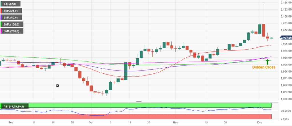 从技术角度来看,短期内黄金价格似乎没有什么变化,因为其看涨倾向可能仍然存在。14日相对强弱指数指标略高于中线,证明了金价反弹的合理性。此外,以50日移动平均线和200日移动平均线为代表的黄金交叉线仍在发挥作用。黄金买家需要在日收2050美元的心理障碍上方找到接受点,才能恢复向最初障碍2100美元的上升趋势。如果金价持续走高,将再次挑战2144美元的历史高点。