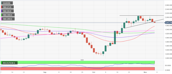 在周二迄今为止的交易中,金价似乎在 1970 美元附近的四天低点中很脆弱。 然而,美债收益率的重新抛售可能会限制金价的进一步下跌。 市场期待美联储官员再次重返讲台,在美联储主席鲍威尔上周的鹰派态度没有预期那么强硬之后,他们对未来政策的前景可能会受到密切关注。 鲍威尔的言论粉碎了 12 月加息的希望。