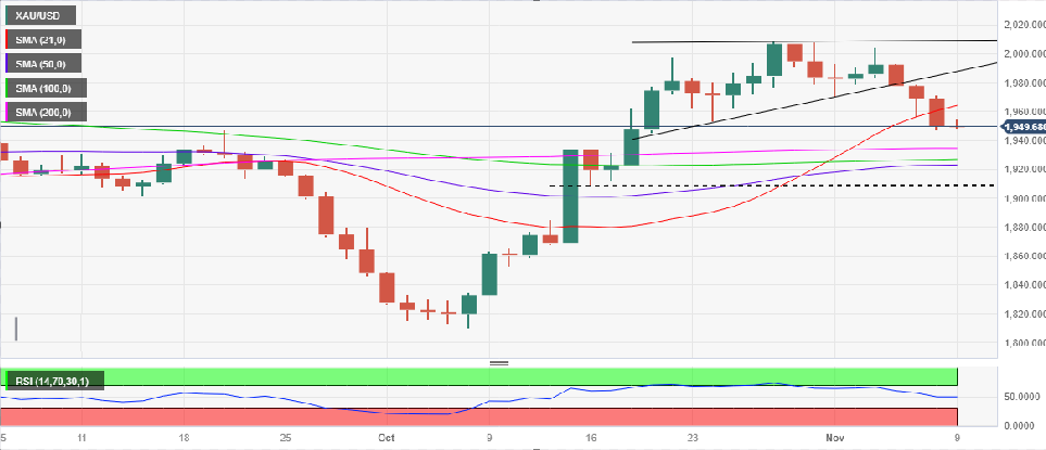 • 在上升的三角形破裂和看跌的相对强弱指数中,黄金价格看向 200 日移动均线