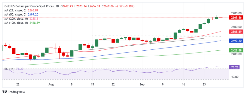 相反,金价的任何回调都可能测试 9 月 24 日的低点 2,623 美元,跌破此低点将触及 2,600 美元的门槛。