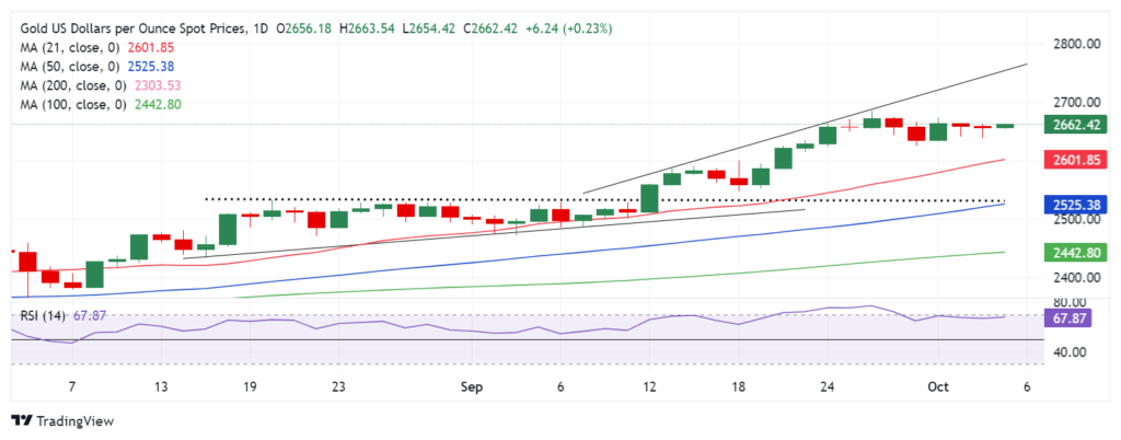 另一方面,接受 9 月 24 日低点 2,623 美元以下的水平对于进一步释放跌势至 2,600 美元的门槛至关重要,21 天简单移动平均线 (SMA) 与此重合。
