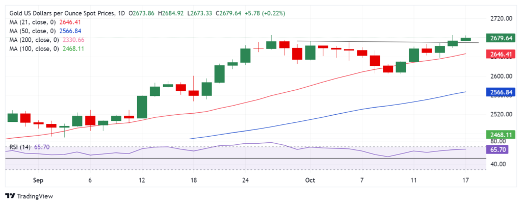 黄金价格预测:XAU/USD 周三收于 2,670 美元上方,有望升至 2,700 美元