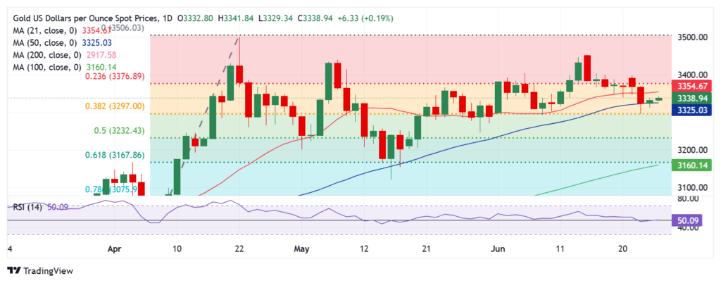 日线图显示,金价守住了 50 日均线 $3,325 的强支撑位。