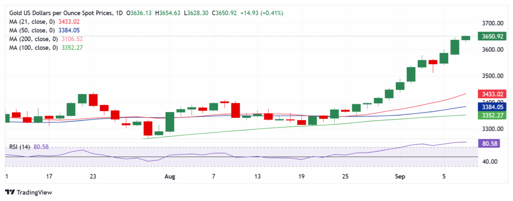 周二早盘,黄金正在测试$3,650上方的报价,因为在美元持续看跌和略微积极的风险基调下,创纪录的上涨势头仍未减弱。
