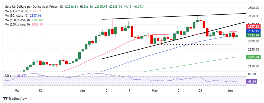 另一方面,任何反弹都需要接受 50 日 sma 支撑位转为阻力位(目前为 2337 美元)上方,以对抗坚挺的 21 日 sma(2358 美元)。进一步来看,黄金买家可能会向 5 月 24 日的高点 2364 美元展示实力,高于此水平,金价可能会上涨至上升楔形支撑位转为阻力位 2400 美元。