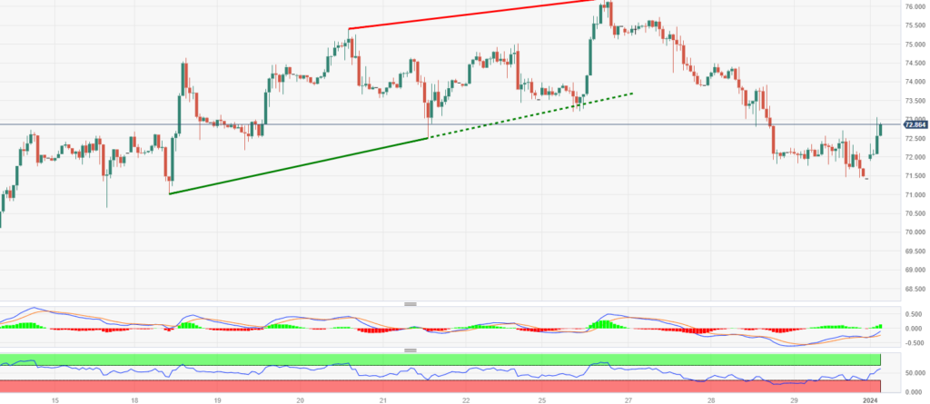 趋势回顾:Oil prices are flat whilst residing below $74 with some downside pressure building. Saudi Arabia has cut its key Oil price by $1.25 per barrel for deliveries in Asia as of February. The news comes not from Saudi Aramco itself, but from three independent refiners in Asia who closed recent contracts.