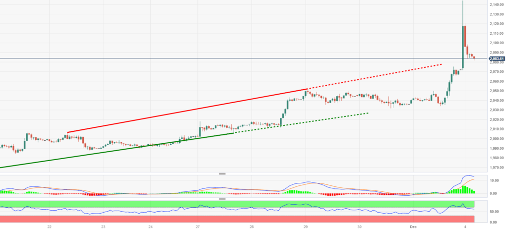 趋势回顾:金价在2,100美元下方回跌,从周一亚洲交易时段2,144美元的历史高点大幅回落。由于对美联储3月降息的押注增加,以及也门胡塞武装与美国之间新的地缘政治担忧,金价飙升。