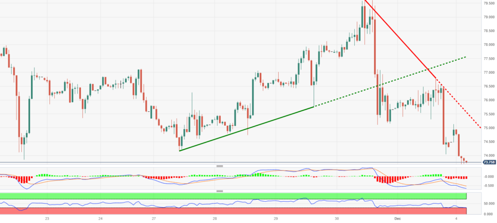 趋势回顾:欧元兑美元在周一亚洲交易时段跌破1.0900,结束了连续三天的跌势。在外界猜测美联储(fed)将于明年3月降息之际,美元走软和美国国债收益率下降支撑了该货币对。欧盟主席森蒂克斯和拉加德的讲话还在等待中。