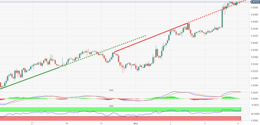 趋势主题:澳元兑美元向接近0.6520的三个月高位上扬,市场关注澳大利亚央行的决定。