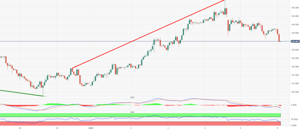 趋势主题:东京通胀数据走软后,美元兑日元回落至144.00下方。