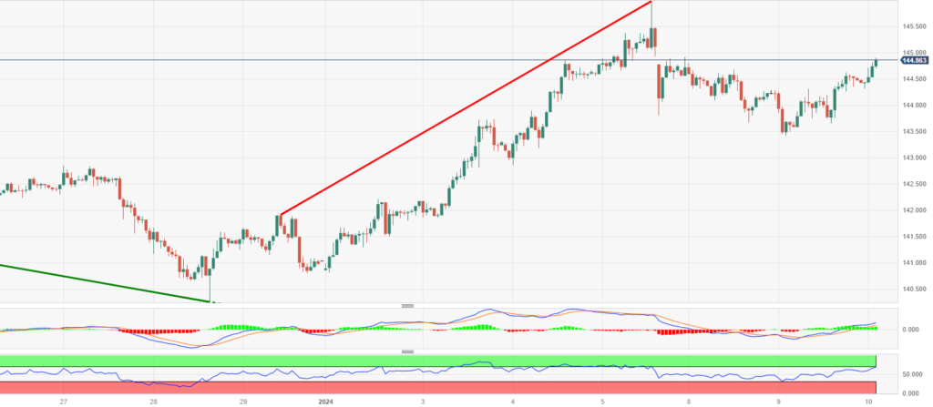 趋势主题:在日本公布工资数据后,美元兑日元继续朝着145.00方向前进。