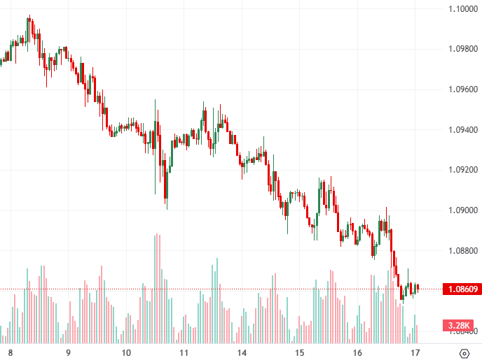 趋势主题:欧洲央行利率决议公布前,欧元/美元回落至十周低点