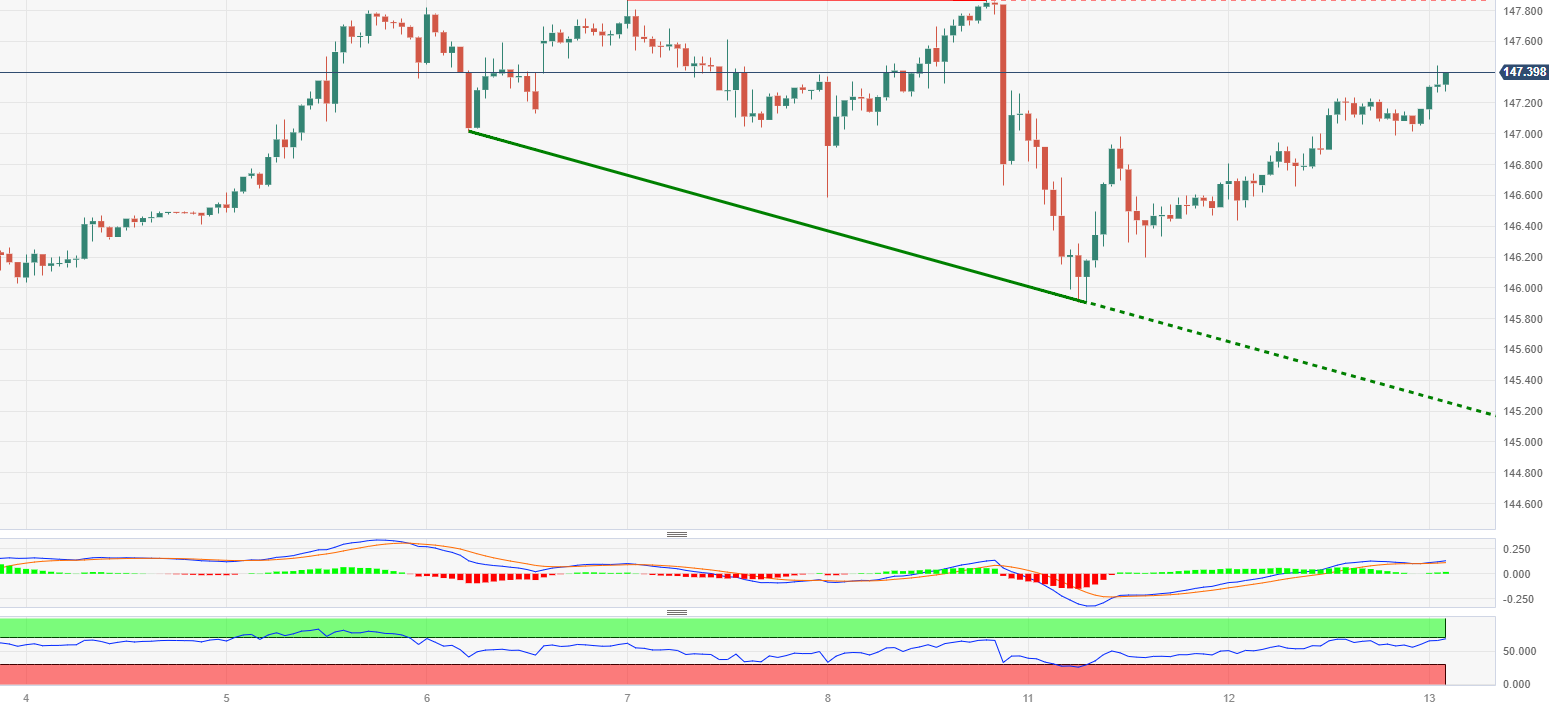 趋势回顾:周二亚洲时段,在美国消费者物价指数(CPI)公布之前,美元/日元努力从前一天的跌势中回升,在146.60附近徘徊。由于日本央行(BoJ)的看涨言论以及美元(USD)的低迷表现,该货币对面临下行压力。.