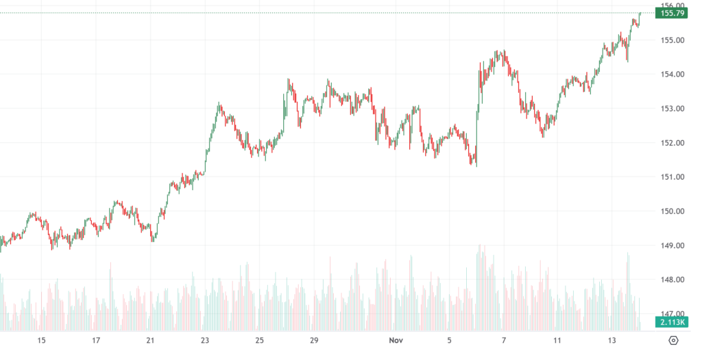 趋势主题:美元/日元坚挺于数月高位附近,高于 155.00 美元中期