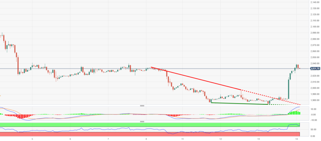 趋势回顾:周四亚洲早盘,金价飙升至 2,000 美元以上。 美联储会议后美元和国债收益率走弱提振了黄金。 黄金价格报 2,020 美元,当日上涨 0.16%。