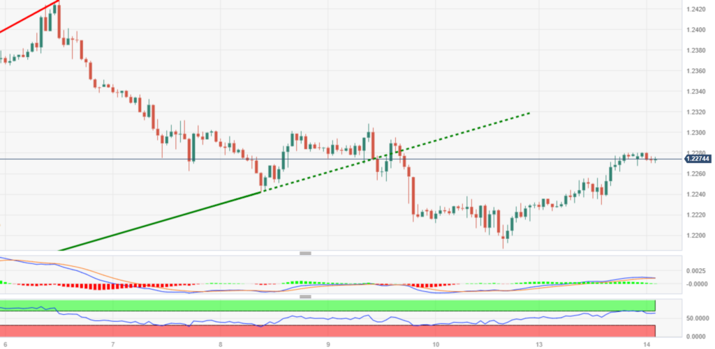 趋势回顾:英镑/美元周一从 20 日移动平均线升至 1.2280。 在亚洲时段之前,由于美元持续疲软,汇价在 1.2275 附近盘整。 注意力转向英国就业数据和周二公布的美国关键消费者物价指数数据。