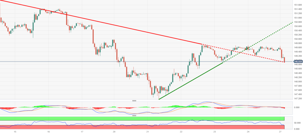 趋势回顾:周一亚洲早盘,美元兑日元维持在149.00年代中期附近的多日区间主题不变。由于本周日本没有发布顶级经济数据,美元兑日元汇率仍受美元价格动态的支配。