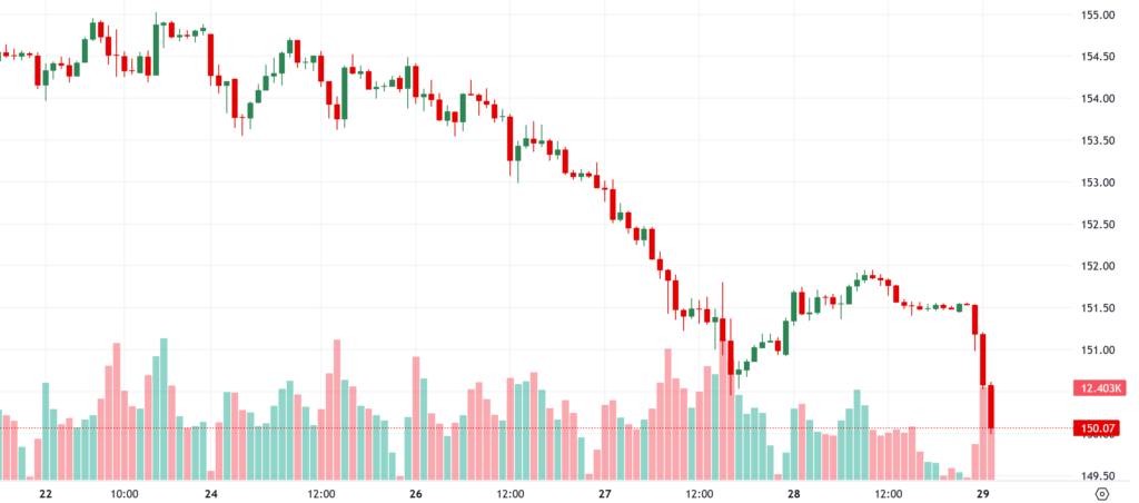 | 151.45 | 支持* | 150.95 * | 150.42 ** | 149.92 *** |