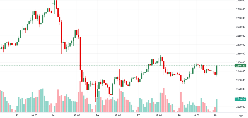 趋势回顾:由于美国市场因感恩节休市,周四黄金价格在流动性清淡的情况下在 2,630 美元附近盘整。地缘政治继续推动这种无收益金属的价格,在过去三个交易日中价格有所下跌。黄金交易价格为 2,637 美元,几乎没有变化。