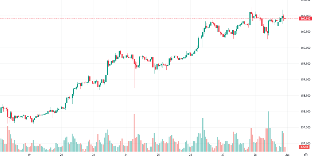 趋势主题:美元/日元交投于 161.00 附近,略低于 1986 年以来的最高水平,偏向积极。