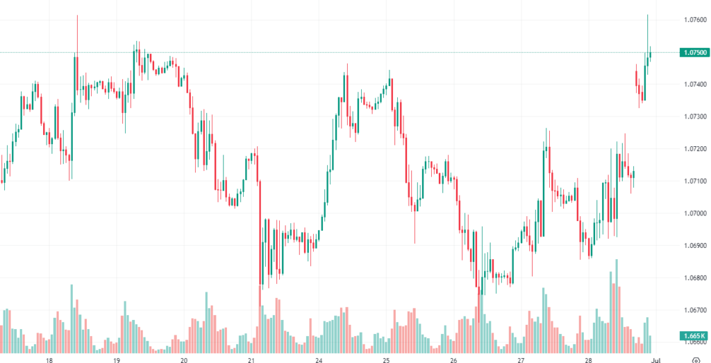 趋势回顾:周一亚市盘中,欧元/美元在1.0750附近维持涨势。由于法国出口民调显示极右翼的民族集结党(RN)在第一轮临时选举中获胜,欧元上涨。与此同时,美国PCE通胀数据疲软,美联储降息押注重燃,美元保持上涨。
