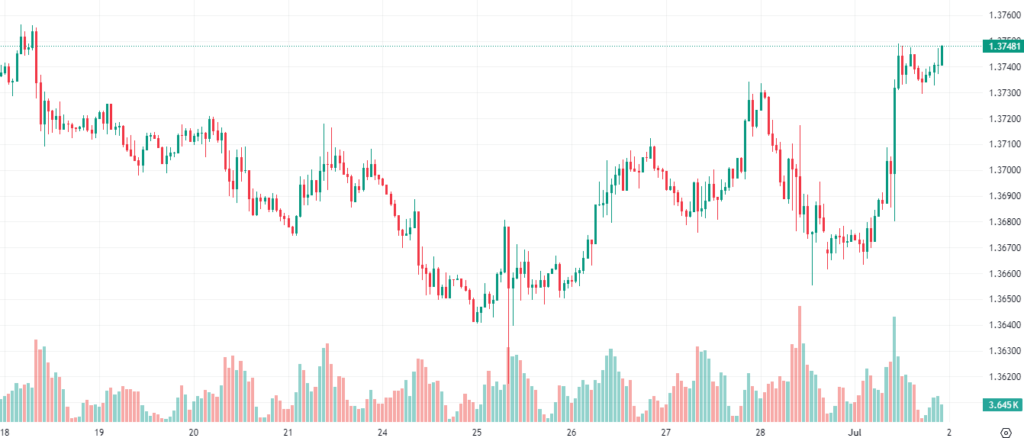 趋势回顾:周二亚洲早盘,美元/加元上涨至 1.3735 附近。美元走强和美国国债收益率上升推动该货币对反弹。不过,由于下半年原油供应担忧可能推高与大宗商品挂钩的加元,该货币对的上行空间可能有限。