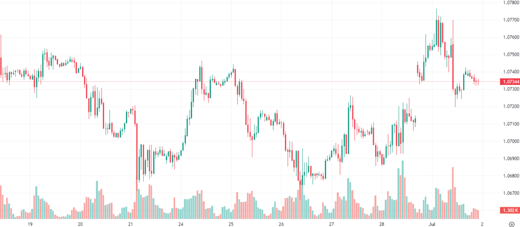 趋势回顾:欧元/美元周一触及 1.0770 上方,创下数周新高,随后因投资者情绪普遍逆转而回落。美国活动数据发出经济衰退加剧的警告信号后,看涨势头被打断。
