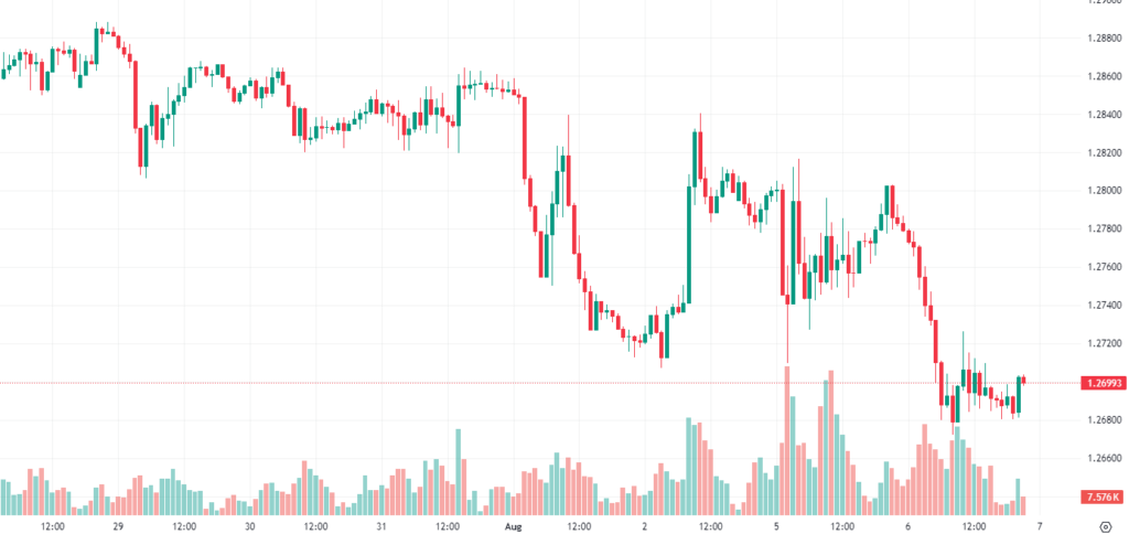 趋势回顾:英镑兑美元周二下跌近一个百分点,因英镑兑大盘继续贬值。由于市场继续期待美联储 9 月降息,市场风险偏好回升,美元出现疲软,但英镑快速贬值导致英镑跌至五周新低,略低于 1.2700。