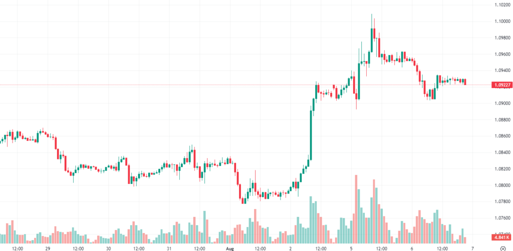 趋势回顾:欧元/美元缩减近期涨幅,周二从 1.1000 回落,因市场继续消化近期外汇市场流动的再平衡。投资者已恢复立场,并重新押注美联储从 9 月开始加快降息步伐。