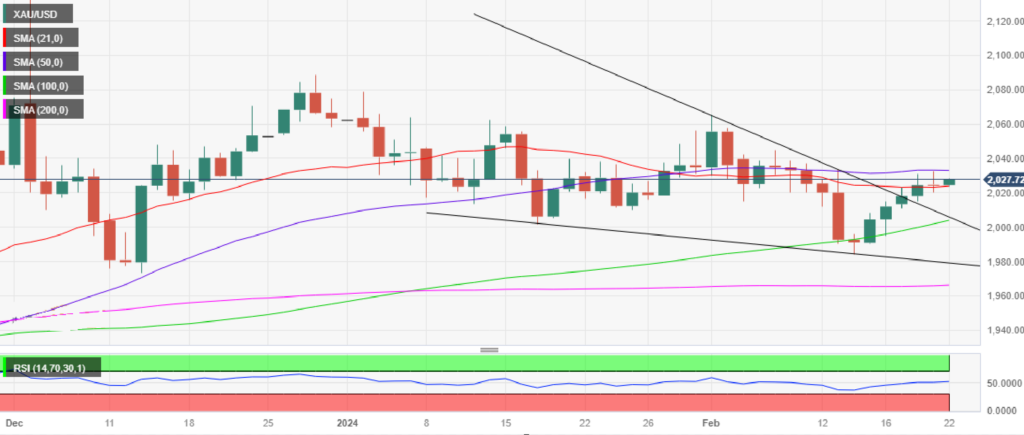 金價在周三暫停了復甦反彈後,周四早些时候在 2030 美元附近恢复了看涨势头。 尽管美联储1月会议纪要较为鹰派,但风险偏好的市场环境仍对美元构成阻力。亚洲市场呈走高趋势,中国股市受到最新政策支持措施以及最新禁止主要机构投资者在开盘和收盘卖出禁令的支撑。美国科技巨头英伟达周三华尔街收盘后发布的令人鼓舞的盈利结果也支撑了这种情绪。在市场情绪好转的情况下,美国标准普尔500指数期货上涨0.74%,美元保持悲觀基調,使金價重拾復甦動力。