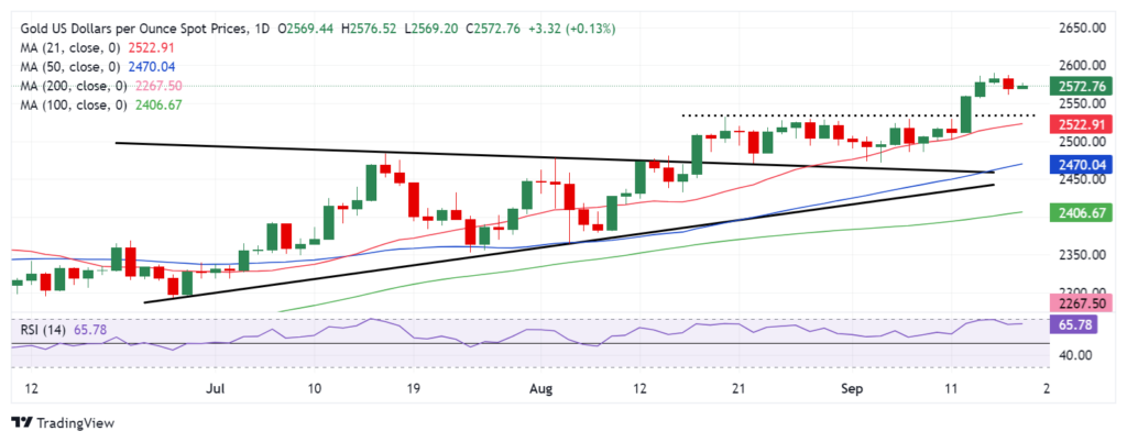 - 在每日 RSI 看漲且高於 2,560 美元的情況下,金價可能重新測試 2,590 美元的曆史高點。
